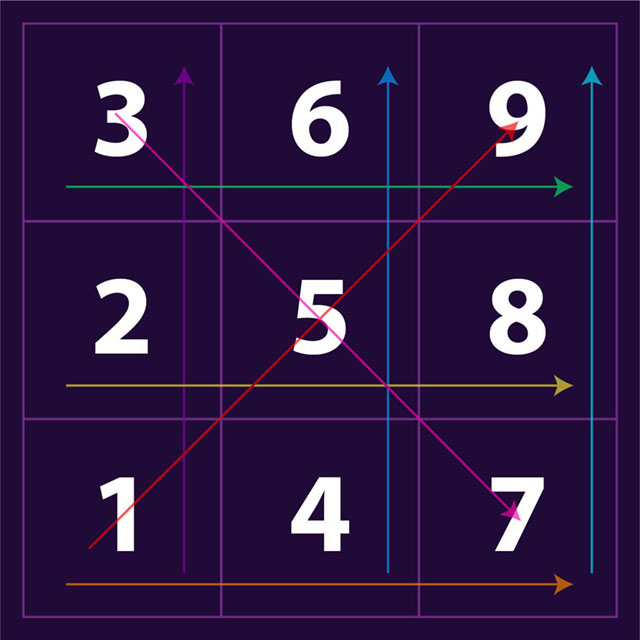 Step 4: Draw arrows in Numerology vertically, diagonally or horizontally in the chart by combining all three numbers in the squares.