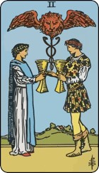 ការបង្ហាញខ្លួនរបស់កាត Two of Cups បង្ហាញថា នៅពេលនេះ អ្នកអាចកំពុងស្ថិតនៅក្នុងទំនាក់ទំនងដ៏គួរឱ្យស្រឡាញ់មួយ ឬកំពុងត្រៀមខ្លួនបើកបេះដូងដើម្បីជួបនរណាម្នាក់ដែលពិសេស។ កាតនេះសង្កត់ធ្ងន់លើទំនាក់ទំនងប្រកបដោយតុល្យភាព ដែលបេះដូងទាំងពីរមានការយល់ចិត្តគ្នា ចេះចែករំលែក និងគាំទ្រគ្នាទៅវិញទៅមក។