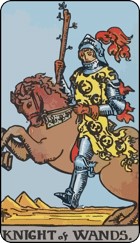 កាត Knight of Wands តំណាងឱ្យស្មារតីដែលពោរពេញដោយចំណង់ចំណូលចិត្ត និងចូលចិត្តផ្សងព្រេងរបស់អ្នក។ អ្នកងាយនឹងចាប់ចិត្តនឹងរឿងថ្មីៗ និងគួរឱ្យរំភើប ប៉ុន្តែអ្នកអាចនឹងបាត់បង់ចំណាប់អារម្មណ៍នៅពេលដែលអ្វីៗក្លាយជារឿងសាមញ្ញ។