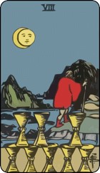 សន្លឹកកាត Eight of Cups បង្ហាញថា ទំនាក់ទំនងនេះបច្ចុប្បន្នកំពុងខ្វះខាតនូវភាពពេញលេញផ្នែកអារម្មណ៍។ ទោះបីជាខាងក្រៅមើលទៅទំនាក់ទំនងនេះហាក់ដូចជានៅដដែលក៏ដោយ ប៉ុន្តែក្នុងចិត្តអ្នកអាចនឹងមានអារម្មណ៍ទទេស្អាត ឬមិនមានអារម្មណ៍ថាទទួលបានការថែទាំផ្លូវចិត្តដូចមុនទៀតទេ។ សន្លឹកកាតនេះឆ្លុះបញ្ចាំងពីភាពនឿយហត់ក្នុងចិត្តស្ងៀមស្ងាត់ នៅពេលដែលបេះដូងរបស់អ្នកចាប់ផ្តើមសួរខ្លួនឯងថា តើទីនេះនៅតែជាកន្លែងដែលអ្នកពិតជាចង់នៅមែនដែរឬទេ។